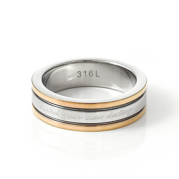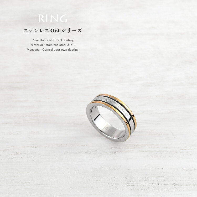 リング レディース ステンレス 刻印 シンプル つけっぱなし ごつめ 太め 幅広 ローズゴールドカラー メッセージ おしゃれ 指輪 サージカルステンレス 316L ノンアレルギー 金属アレルギー対応