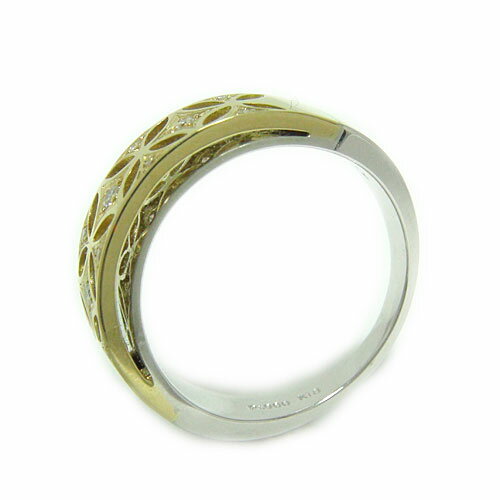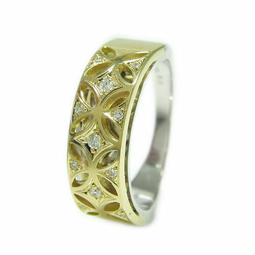PT900プラチナ/K18イエローゴールド リング 指輪 ダイヤモンド 幅広 太め 大ぶり ボリューム コンビ 透かし柄 アンティーク 高級リング 天然石 誕生石 プレゼント *1点限り【現品特価】