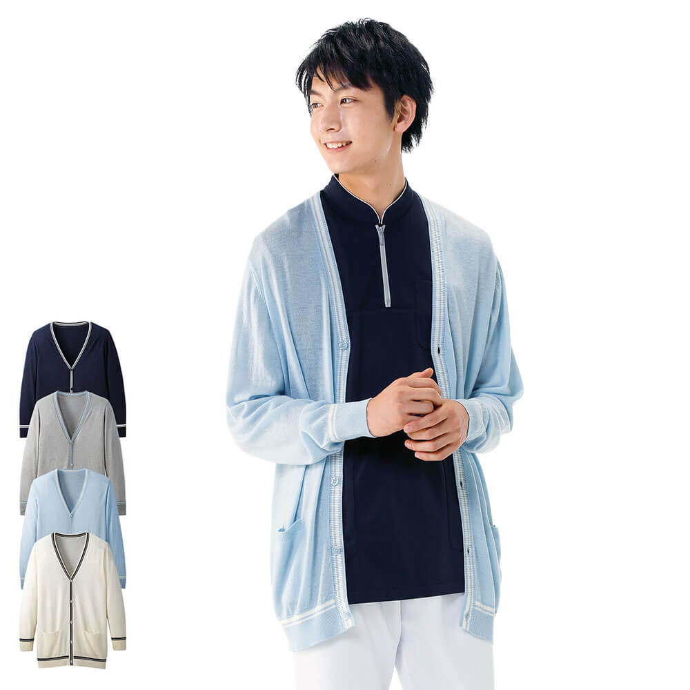 7031 男女兼用 抗ピル配色カーディガン(レギュラー丈) 【ナース 白衣 医療 看護師 介護 事務 カーデ】