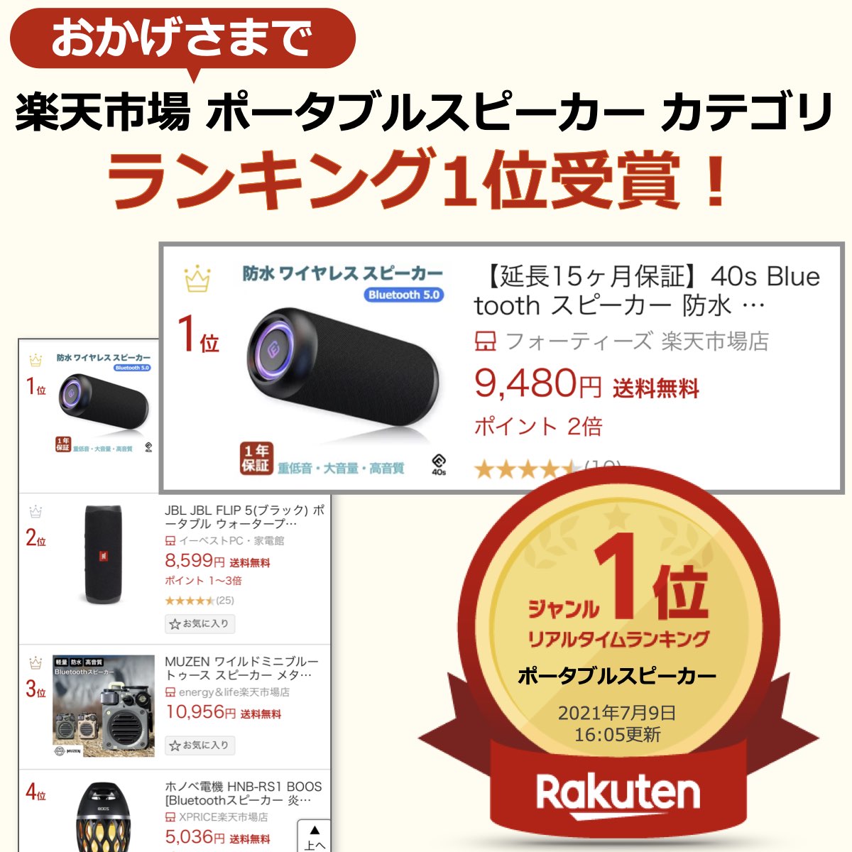 【製品概要】 Bluetoothスピーカー Bluetooth5.0 防水、防塵、SDカード再生、LED照明、ハンズフリー通話等、高機能を備えたブルートゥーススピーカー、40s Bluetooth スピーカー CW1L です。