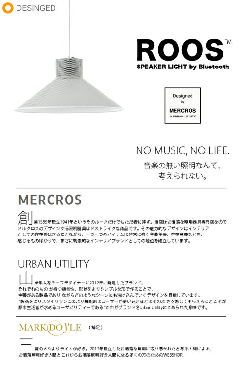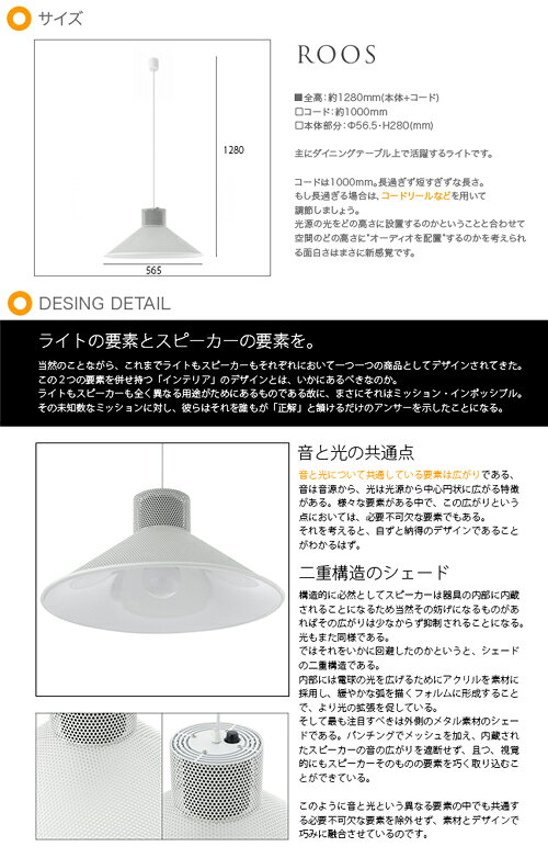 商品名: 品番: メーカー 【ROOS:ルース】 ■Bluetooth接続スピーカー搭載ペンダントライト ※ご選択頂く付属電球により金額変更となるお客様は修正した価格にて当店より受付メールをお送りいたします。