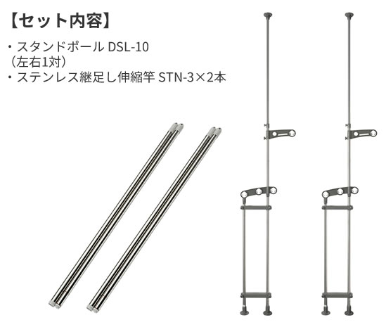 セット内容「積水 ベランダ物干し台スタンドポール DSL-10」と「積水 ステンレス継足し伸縮竿 STN-4」のセット。