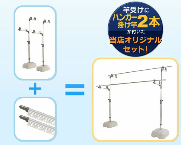 ものほしスタンド左右用2個&竿2本セット【積水樹脂】大人気の「セキスイ ブロー台付き ステンレス物干し台セット BD-50S」と「セキスイ ハンガー掛け付き物干し竿(3m) 2本セット」がセットになって登場!たっぷり干せて安定性抜群!ものほし台は、砂や水を注入して使用する安定性抜群のブローベース付き。