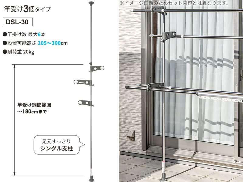 セキスイ ベランダ 物干しセット【竿2本付き】 ステンレス 突っ張り 物干し台 & 物干し竿 2.2〜 3m DSL-30 + STN-3N×2本 | つっぱり ベランダ 洗濯物干し 外干し ものほし 軒下