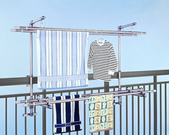 屋外物干しセット【竿2本付き】 セキスイ ステンレス 手すり取付物干台 & ハンガー掛け付き物干し竿 2.2〜 3m